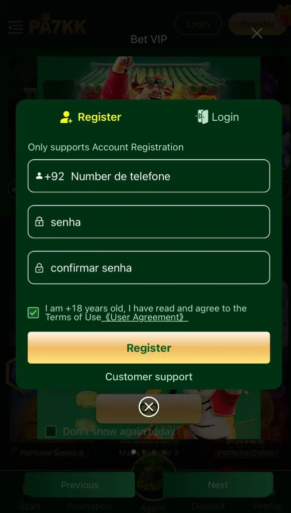 - Tap “Register” – On the home screen, look for the registration or sign-up button.