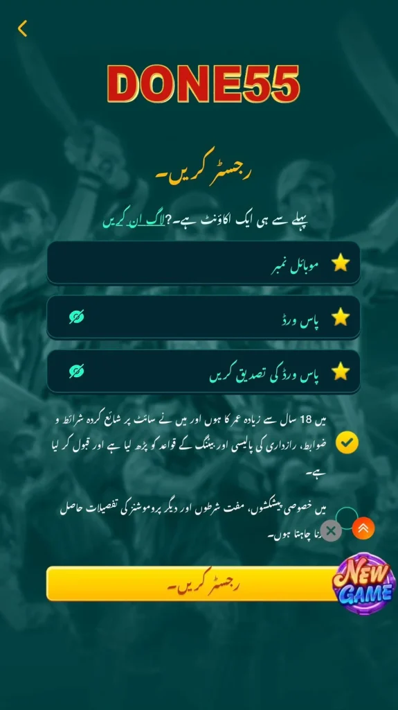 Creating an account on Done55 is simple and quick. Users only need basic details to sign up and start playing without lengthy procedures.